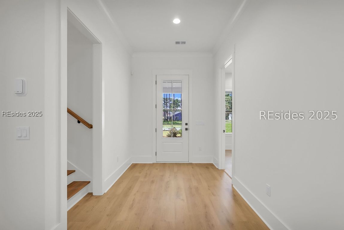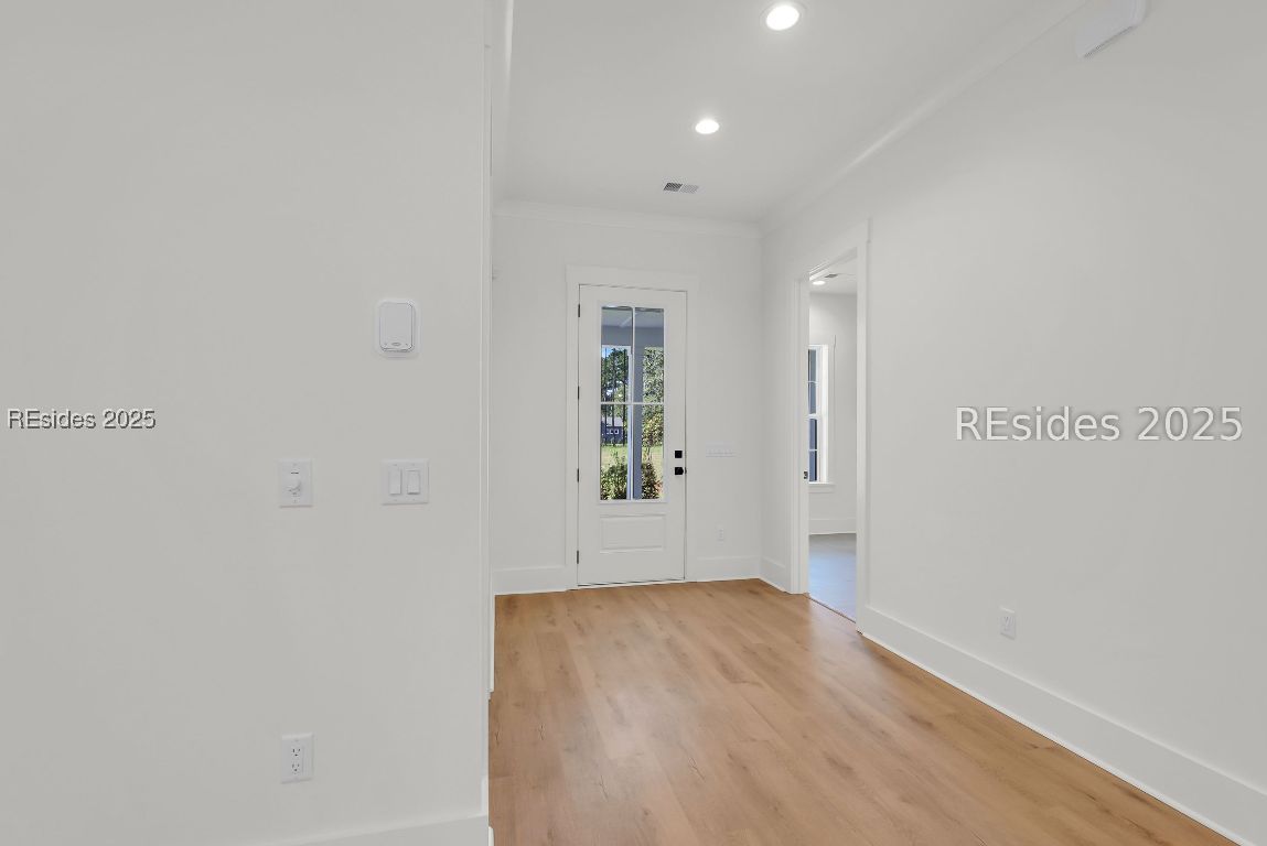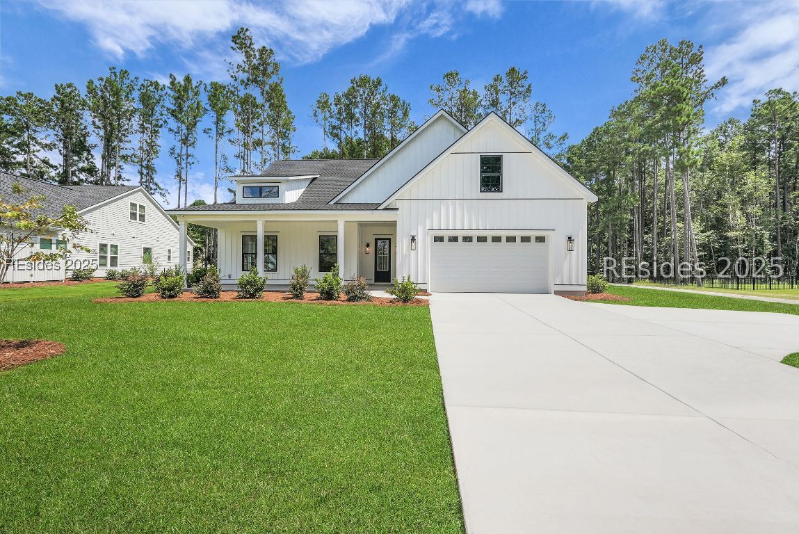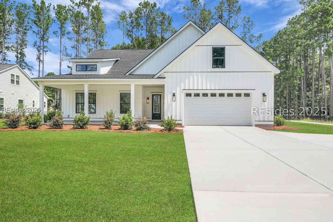 Set on nearly half an acre, this 3 bedroom, 2.5 bath home combines elegant design with modern comfort. This custom 2025 home showcases a thoughtful layout featuring a first-floor primary suite and two very spacious spare bedrooms. The main living area boasts soaring 10-foot ceilings creating a generous open floor plan, complete with gourmet kitchen, oversized pantry, large dining area, and cozy living room. The first-floor master suite is a private retreat featuring his and hers closets, dual vanities, make-up bar, and spacious double head shower... creating a spa-like atmosphere! The generous secondary bedrooms share a beautifully appointed bath delivering the perfect getaway for your guests. Over the garage you will find a 378 sqft space offering endless possibilities for a home office, media room, gym or third guest space! Additional upgrades include a 3 zone HVAC system, exterior cameras, built in sound system (living room, dining room, main bedroom) upgraded pendent light fixtures, Thermador appliances, 700CFM hood vent, under cabinet lighting, tankless hot water heater, electric fireplace, and many built ins for unlimited storage! Nestled within a private championship golf course community, this home offers the ultimate in luxury low-country living.