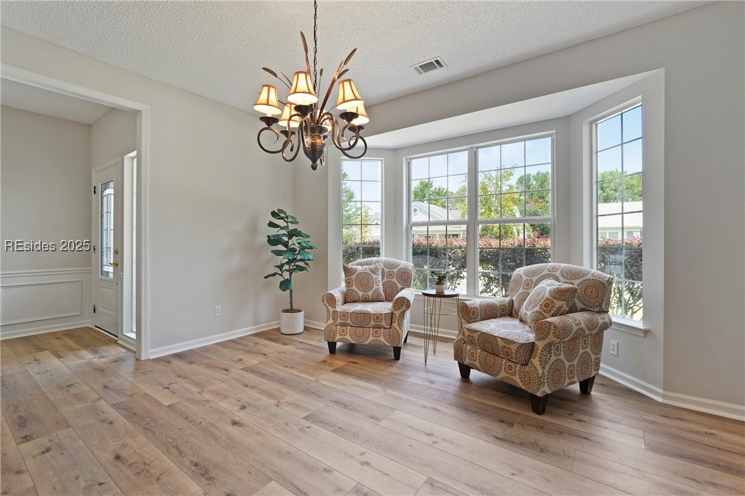 Welcome to this beautifully updated Chestnut Model in Sun City - ideal for entertaining and versatile daily living. The wide-plank, beachy LVP flooring flows through a spacious layout featuring 3 bedrooms, a den (could be a 4th bedroom), and a formal dining room that could function as a game room, crafting space or many other options! The chefs kitchen boasts rich wood cabinets, gas range/oven with separate built-in oven and microwave. The large pantry allows for ample storage while the center island is ideal for meal prep and entertaining. A grand double door entry leads into the light & bright primary suite. Relax in this true retreat featuring a large soaking tub, dual sinks, walk-in shower and expansive closet! Enjoy private berm views from the hard roof, screened lanai with additional patio for outdoor grilling. The 4' extended garage provides room for a golf cart and additional storage.