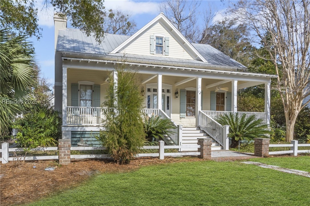 Nestled in the heart of the Lowcountry, this charming Southern cottage blends timeless elegance with modern comfort. With 3 bedrooms and 2.5 baths, it offers a warm retreat. Relax on the classic front porch, perfect for rocking chairs and breezes. Located in the picturesque Habersham neighborhood, it's walking distance to shops and restaurants. Inside, an open living area is bathed in natural light. The gourmet kitchen features granite countertops and stainless steel appliances. The primary suite boasts a spa-like bath. A loft adds versatility. Enjoy the relaxing back porch and landscaped yard year-round. This is a Southern Living floorpan!