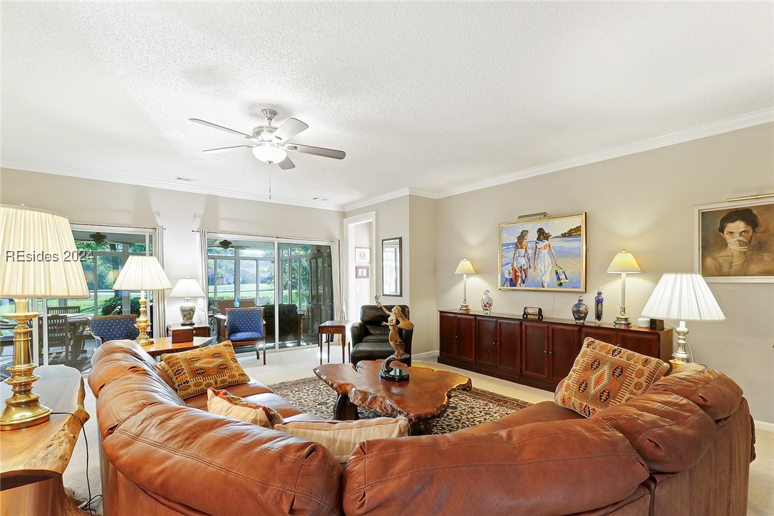 SPECTACULAR, private view of the 15th hole of the Hidden Cypress Golf Course. Enjoy Magnificent sunsets from huge Four Seasons room. GOLF LOVERS DREAM HOUSE!! Equally as nice front of house view of lagoon w/no houses across street! Upgrades include brand new roof (2024), newer kitchen appliances, HVAC 2018, tankless water heater (2018), quartz counters, solar tubes, bay window, partial plantation shutters, crown molding. This Wisteria model offers a spacious great room, eat in kitchen, dining area, large office/study, 3 large bedrooms. Walking distance to Hidden Cypress Amenity Center. Location, lot and size of house makes this a rare find!