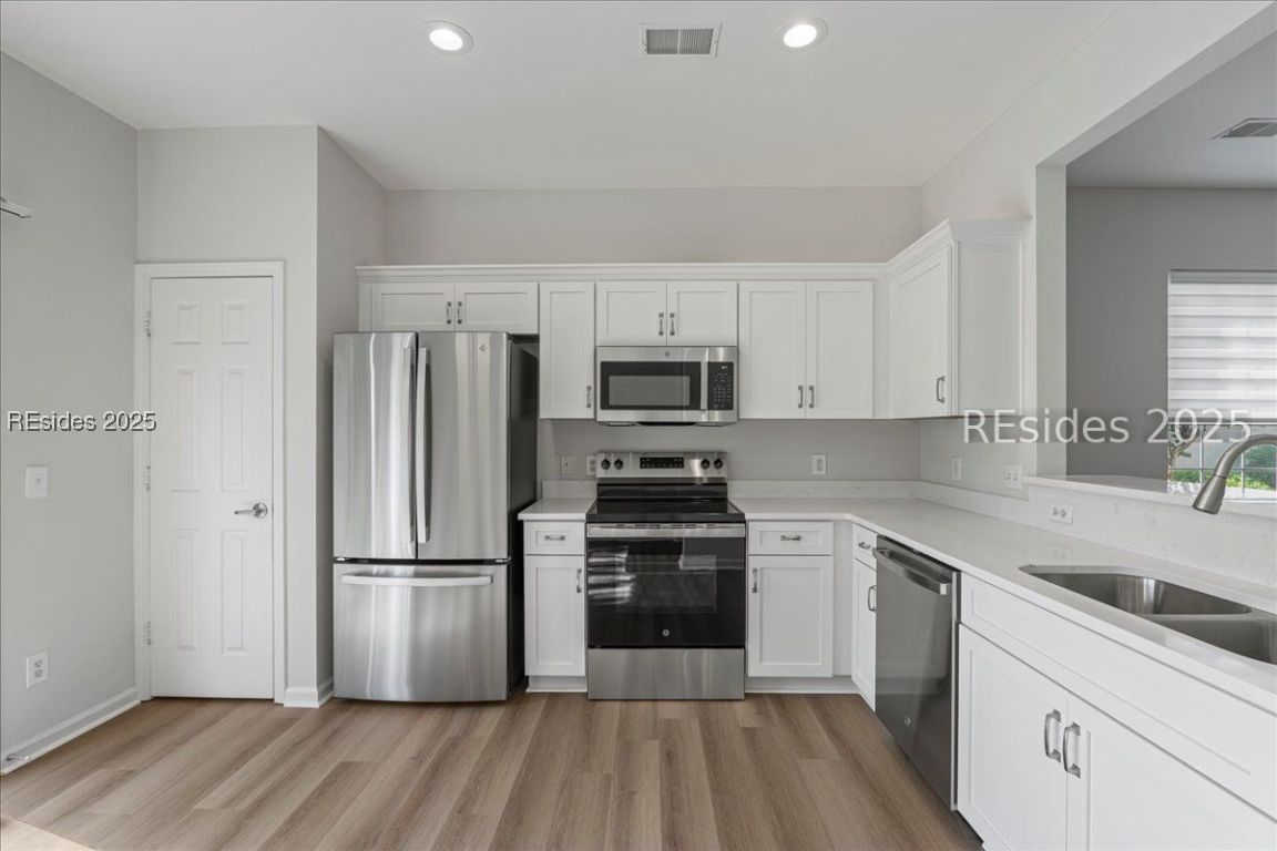 Beautifully renovated 2 Bed 2 Bath BAYBERRY model with tranquil lagoon view from rear patio, inside laundry, and 2 car garage. Updates include: smooth ceilings, renovated cabinets with slow-close doors, quartz countertops in kitchen & master bath, new stainless GE appliances, new LVP floors, new porcelain tile floors in both baths & master closet, new vanity/top/mirror, lights in 2nd bath, new LED lights & ceiling fans, new hot water heater, new interior paint, clean stucco, new garage door opener, HVAC 2015, Roof 2021, and more. Close to back gate, Hidden Cypress clubhouse, pool and rec fields. This house is move-in ready needs nothing!