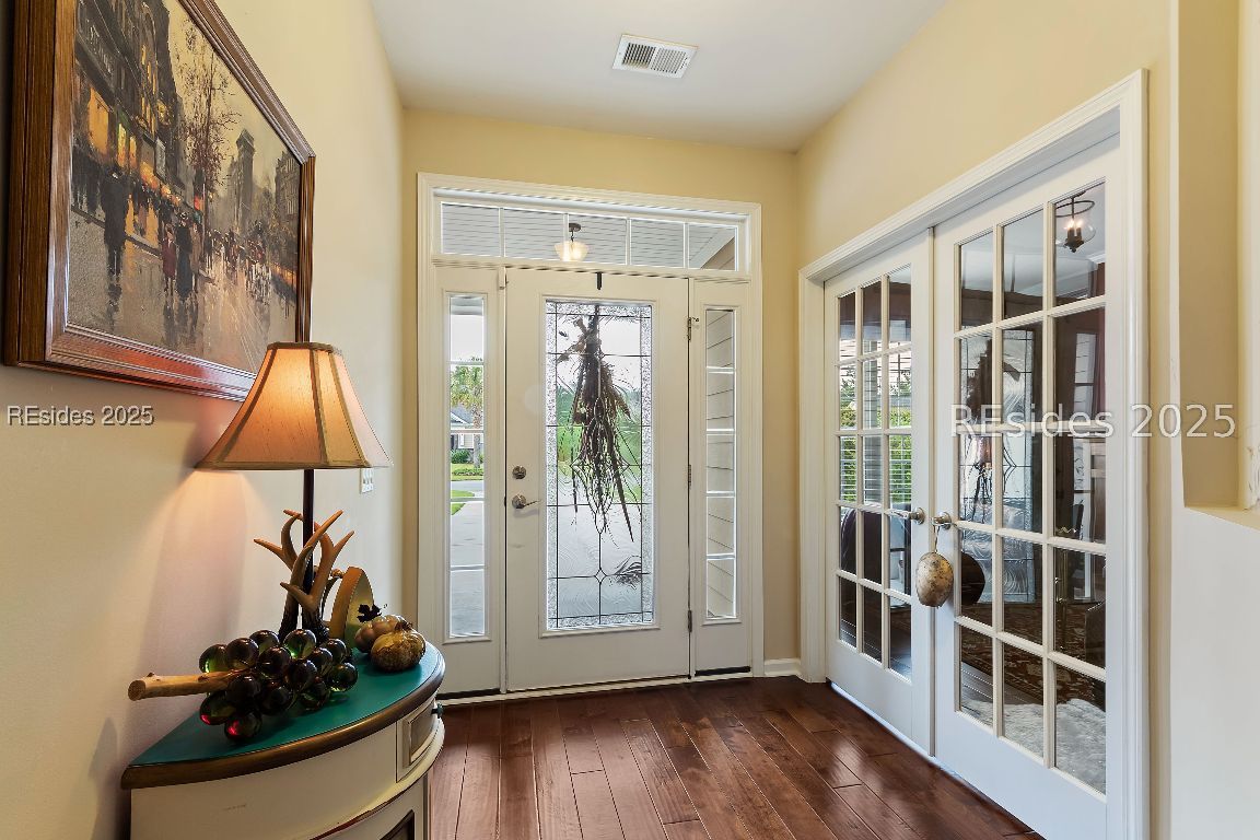 Refined Elegance Meets Everyday Comfort in This Award-Winning One-Level Retreat! This stunning French Provincial inspired residence blends timeless Country Style architecture with modern comfort and understated sophistication, earning it Ideal Living Magazine's 2015 Home of the Year. Nestled on a private, wooded homesite and surrounded by a sunlit forest backdrop, every window frames nature bringing calm, warmth, and privacy into every room. The oversized screened porch, extended for gatherings or solitude, becomes your year-round sanctuary. Whether enjoying morning coffee or evening conversations, its a space that truly lives. Inside, 5" wide engineered hardwood floors and vaulted ceilings create a sense of grandeur and openness. The chef's kitchen, anchored by a massive center island, granite countertops, eat-in dining, and a pantry, is designed to entertain without boundaries.The flexible layout includes three generous bedrooms and a library/den with its own fireplace perfect as a home office or reading retreat. Features that Elevate: * Award-winning single-level floor plan with French Provincial charm. * Vaulted ceilings and open-concept design. * Granite kitchen with oversized island and walk-in pantry. * 5" engineered hardwoods throughout main areas. * Fireplace in library/office. * Oversized, extended screened porch for year-round outdoor living. * Fully fenced backyard for privacy and pets. * Durable Hardie siding and tankless water heater for efficiency. Live Beyond the Home where a Resort Lifestyle Awaits: Located in a sought-after amenity-rich community offering optional golf, a lakeside clubhouse with restaurant, state-of-the-art fitness center, resort pool with lap lanes, pickleball courts, miles of walking trails, and a fully stocked private lake for fishing or kayaking. All just minutes from the Savannah Int'l Airport (SAV), top retail, healthcare, and cultural attractions. This is more than a house, it's a lifestyle that rewards every moment spent at home.