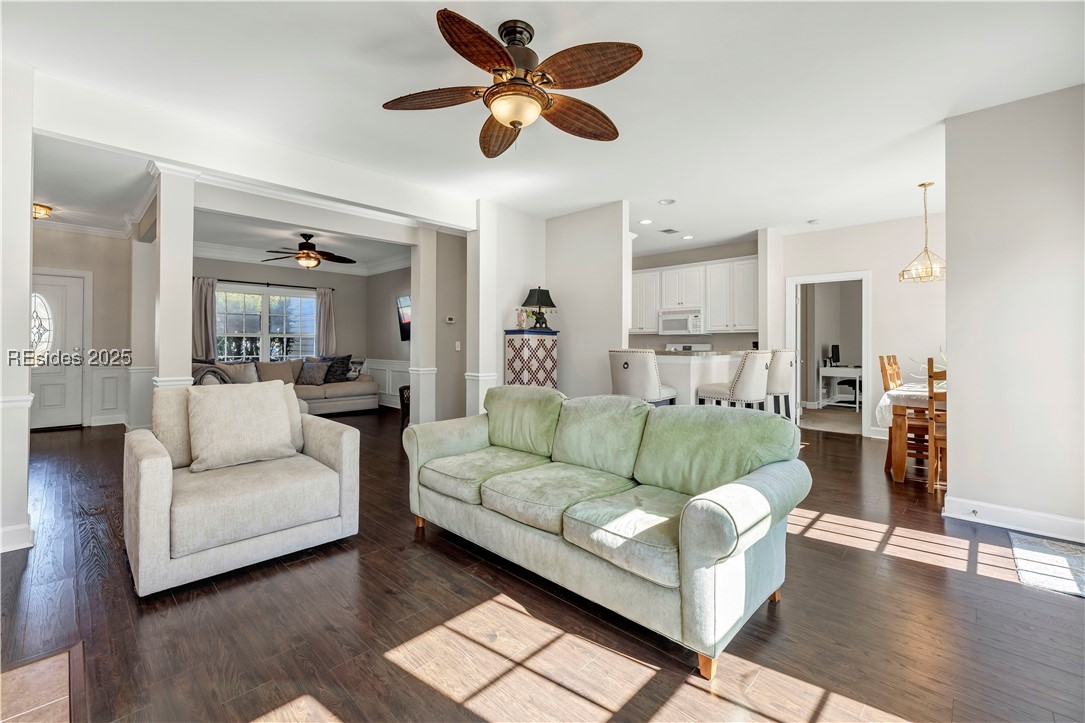 Don't Miss this Opportunity in Lawton Station. One Story 3 Bedroom, 2 Bath Home with 2 Car Garage on oversized lot with privacy. Front Porch & Patio in Back. Open Living Spaces Flow Beautifully & Great Natural Light. Fireplace can be connected to gas easily. Primary Bedroom with Two Closets & Large Bath with Double Vanity areas, Separate Shower & Tub. Good separation between Second & Third Bedrooms. Spacious Second Bath. Hardiplank Exterior. Private, gated community. Just Short Walk to Outstanding Community Amenities & a blend of nature & Lowcountry charm. Fabulous community park, pool, playground, clubhouse & fitness center & more.
