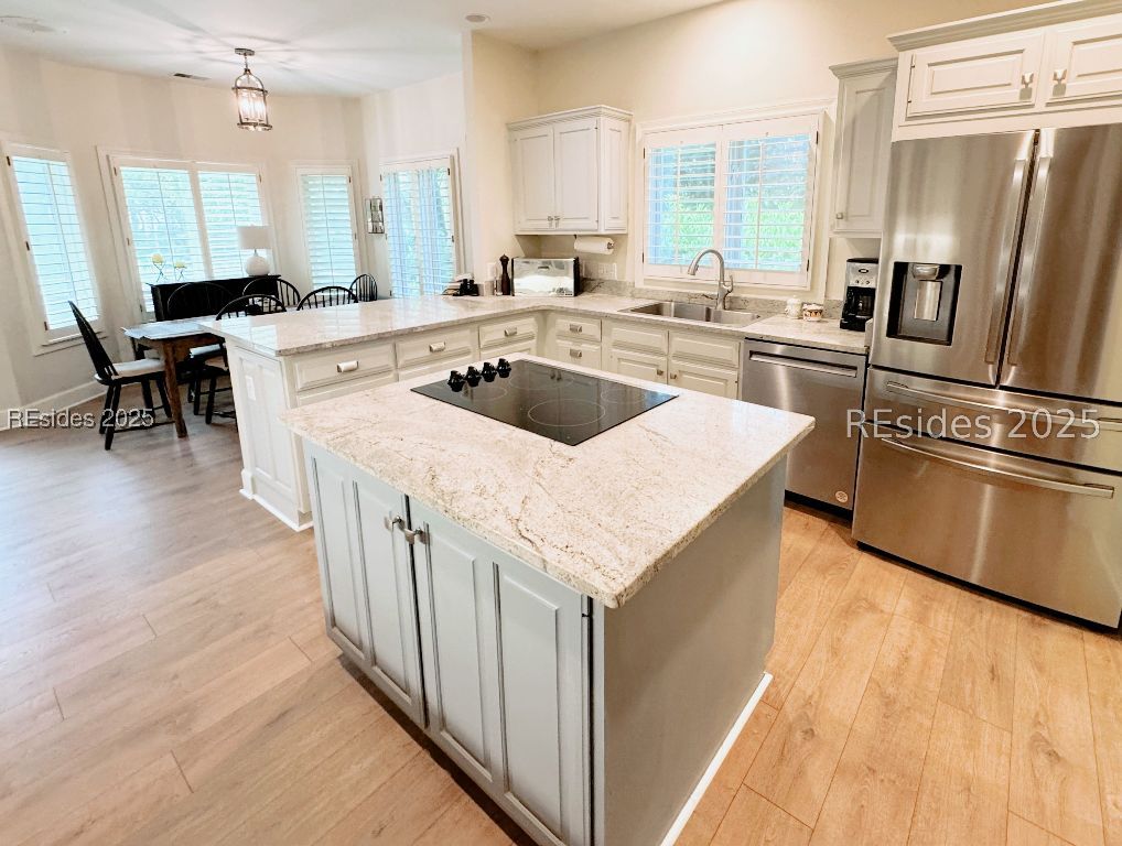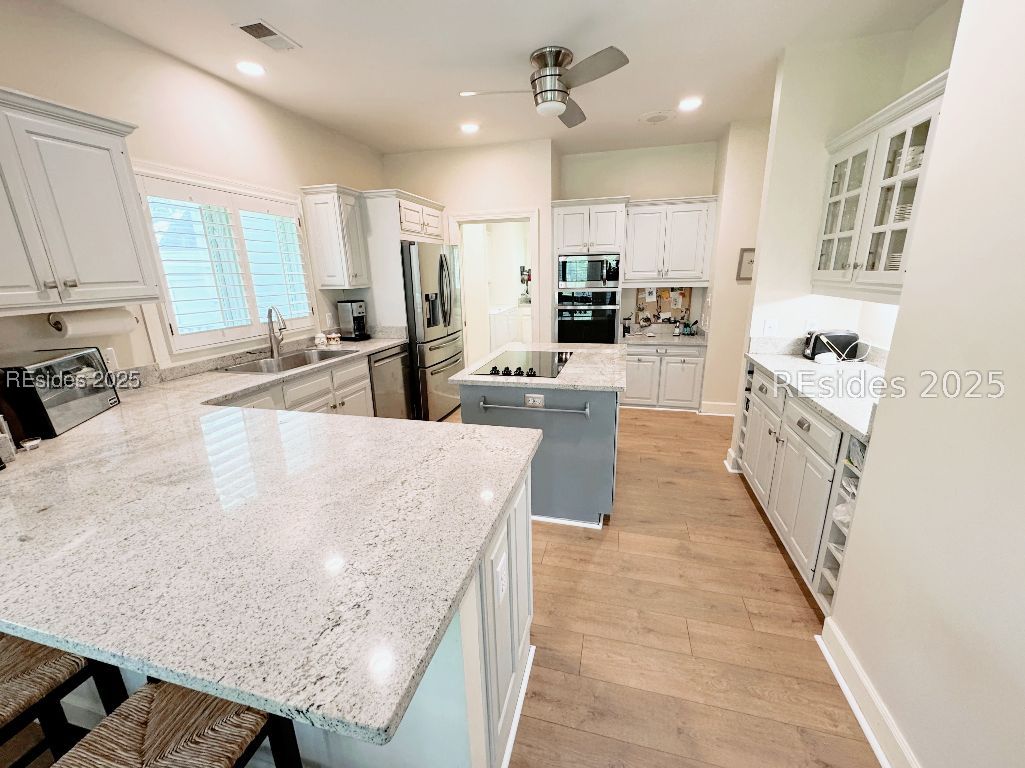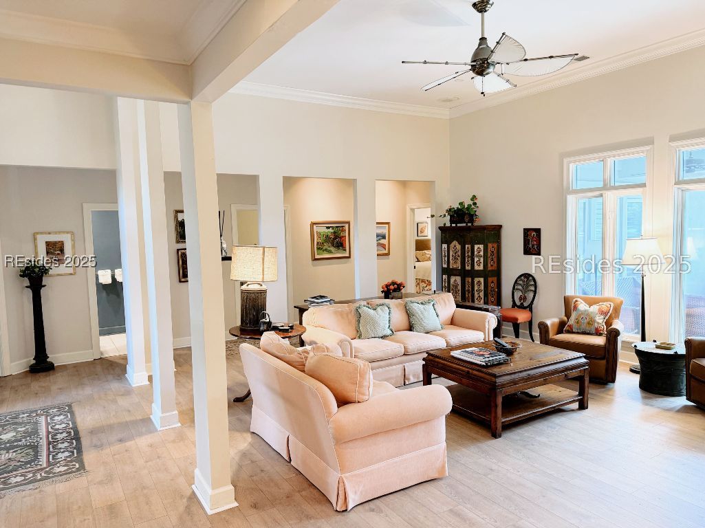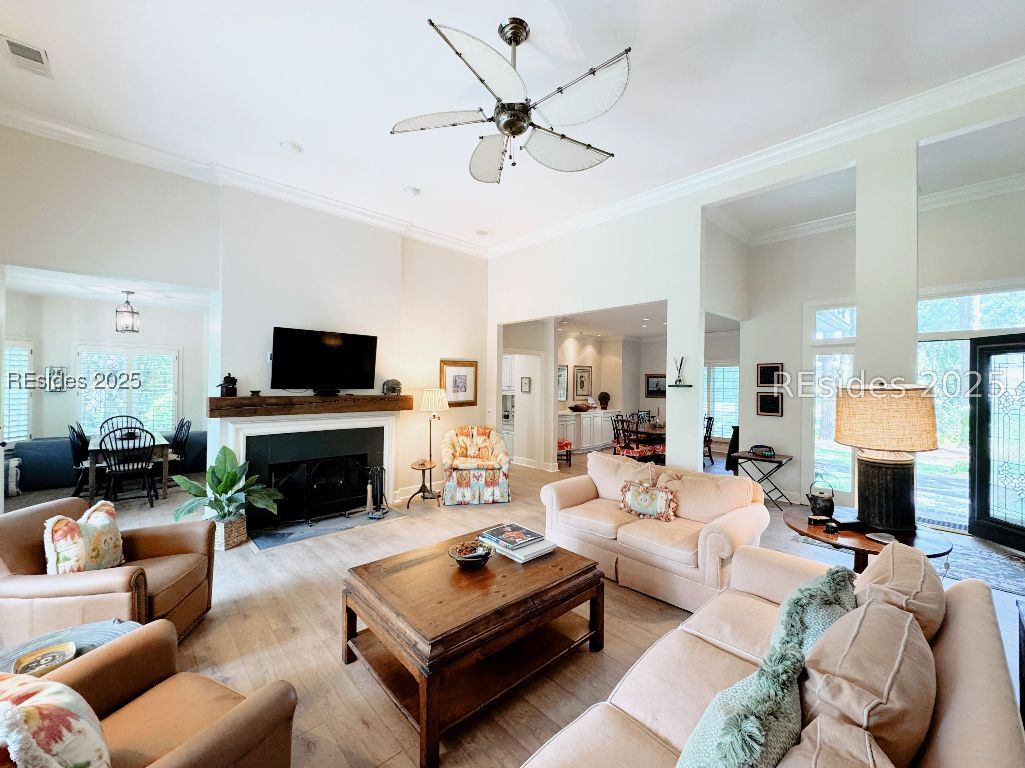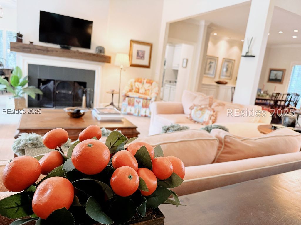 Located on premier Peninsula Drive in Moss Creek, this beautifully updated 3BR + office home offers long, peaceful lagoon views and a fresh new look. Just installed, white oak-style luxury vinyl plank flooring brings modern warmth throughout the main living areas. The dedicated office features freshly painted navy cabinetry - adding a timeless, sophisticated touch. The open-concept design includes a fireplace, built-in buffet, granite countertops, and stainless steel appliances. Morning light floods the living room, breakfast nook, and primary suite. Enjoy a spacious back deck overlooking the lagoon, newer roof and HVAC, and Moss Creek's top-tier amenities: golf, deep-water marina, tennis, pickleball, trails, clubhouse, pools, and more - all minutes to Bluffton and Hilton Head Island.