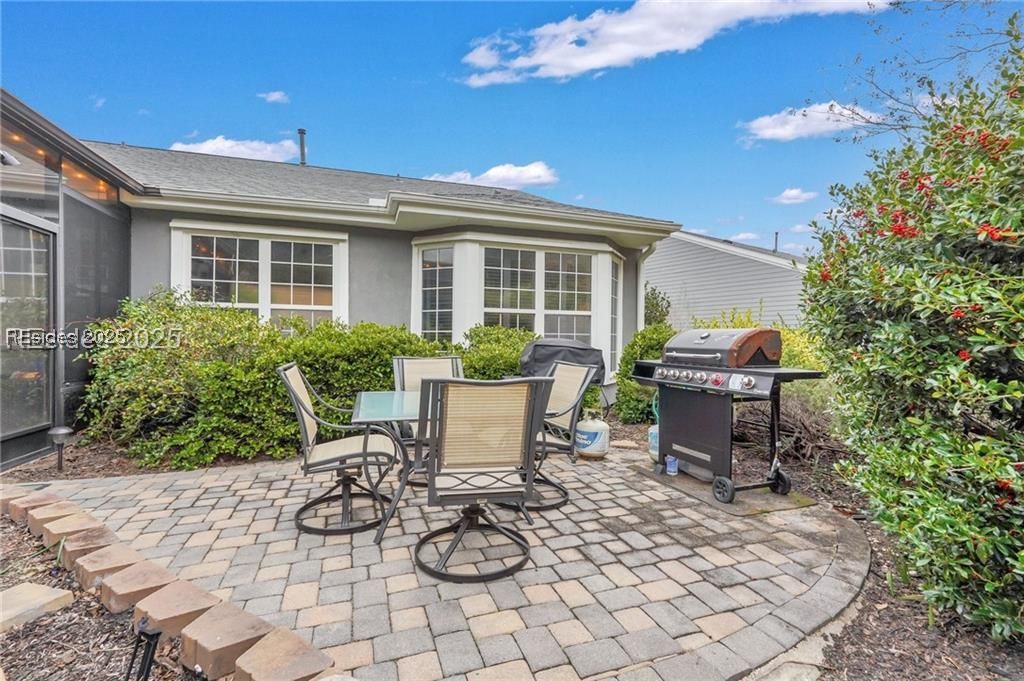 Nestled in the heart of SUN CITY HILTON HEAD, this charming Egret model offers 2BD/2BA plus a versatile office/flex room. With an open-concept design, the kitchen flows seamlessly into the dining and living areas, perfect for entertaining. Step onto the cozy lanai, complete with vinyl windows and a paver floor, then head out to the patio ideal for morning coffee or firing up the grill. The spacious primary suite boasts a bay window, en-suite bath, and generous closet. A private 2nd bedroom and low-maintenance vinyl siding add to the appeal. Just painted interior walls make this blank canvas ready for your personal touches! ******************Sun City Hilton Head in Bluffton, SC, is a premier 55+ community spanning over 5,000 acres, offering an unmatched resort-style lifestyle. Residents enjoy 54 holes of golf across three scenic courses, six pools (including indoor lap and leisure pools), and three fully equipped fitness centers with classes and studios. The sports park offers tennis, pickleball, bocce, softball, volleyball, croquet, and more. Social and creative outlets abound with a ballroom, 16,000 sq ft performing arts theater, arts and crafts studios, woodworking shop, billiards, card rooms, and a library. Outdoor enthusiasts appreciate the Lake Somerset and Riverbend Docks, fishing, miles of walking and nature trails, community gardens, and three dog parks. There are over 150 clubs covering everything from arts and music to technology and lifelong learning. Additional amenities include on-site restaurants, RV and boat storage, and a secure, gated environment with convenient access to Hilton Head beaches, Historic Savannah and Charleston along with local shopping, dining, and healthcare. Sun City is also expanding with a new multimillion-dollar resort style amenity center coming soon!