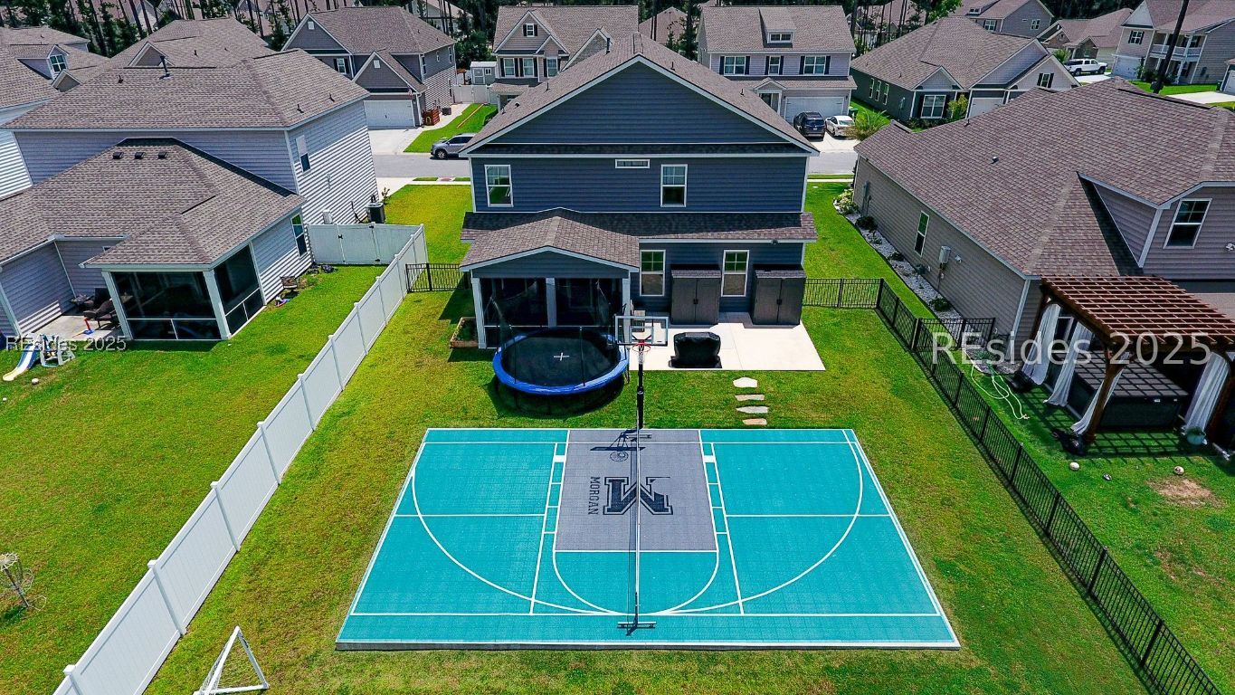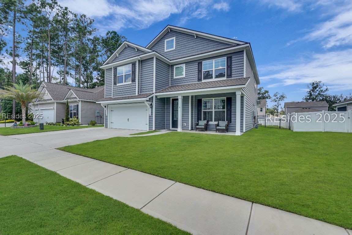 One-of-a-Kind 6-Bedroom Tillman Model with Loft in Cypress Ridge! Located on a quiet, low traffic, cul-de-sac in one of Blufftons most sought-after communities, this stunning 2022-built home offers modern luxury with timeless Lowcountry charm. Enjoy your mornings on the welcoming covered front porch before stepping into a beautifully maintained interior filled with upgrades.The foyer leads to a formal dining room with custom accent wall, crown molding, and elegant finishes throughout the main level. The gourmet kitchen is a chefs dream, featuring quartz countertops, subway tile backsplash, white cabinets, soft-close doors and drawers, a gas range, stainless steel appliances, and a newer refrigerator. The spacious main-floor owners suite includes a custom organization system and a spa-inspired ensuite bathroom with floor-to-ceiling tiled shower and built in safe. Upstairs, you'll find a versatile loft with a custom-built beverage station and wine cooler perfect for entertaining! Secondary bedroom includes thoughtful touches like a built-in vanity and custom closet. Enjoy convenience and style in the large laundry room with added cabinetry. Step outside to a spacious screened lanai and extended patio, ideal for outdoor gatherings. The fully fenced backyard features a private basketball/pickleball court rare bonus! Other highlights: Extra parking pad, Upgraded lighting throughout, Resort-style community amenities, Close proximity to The New Riverside Barn Park, May River Crossing, and Riverside Village.